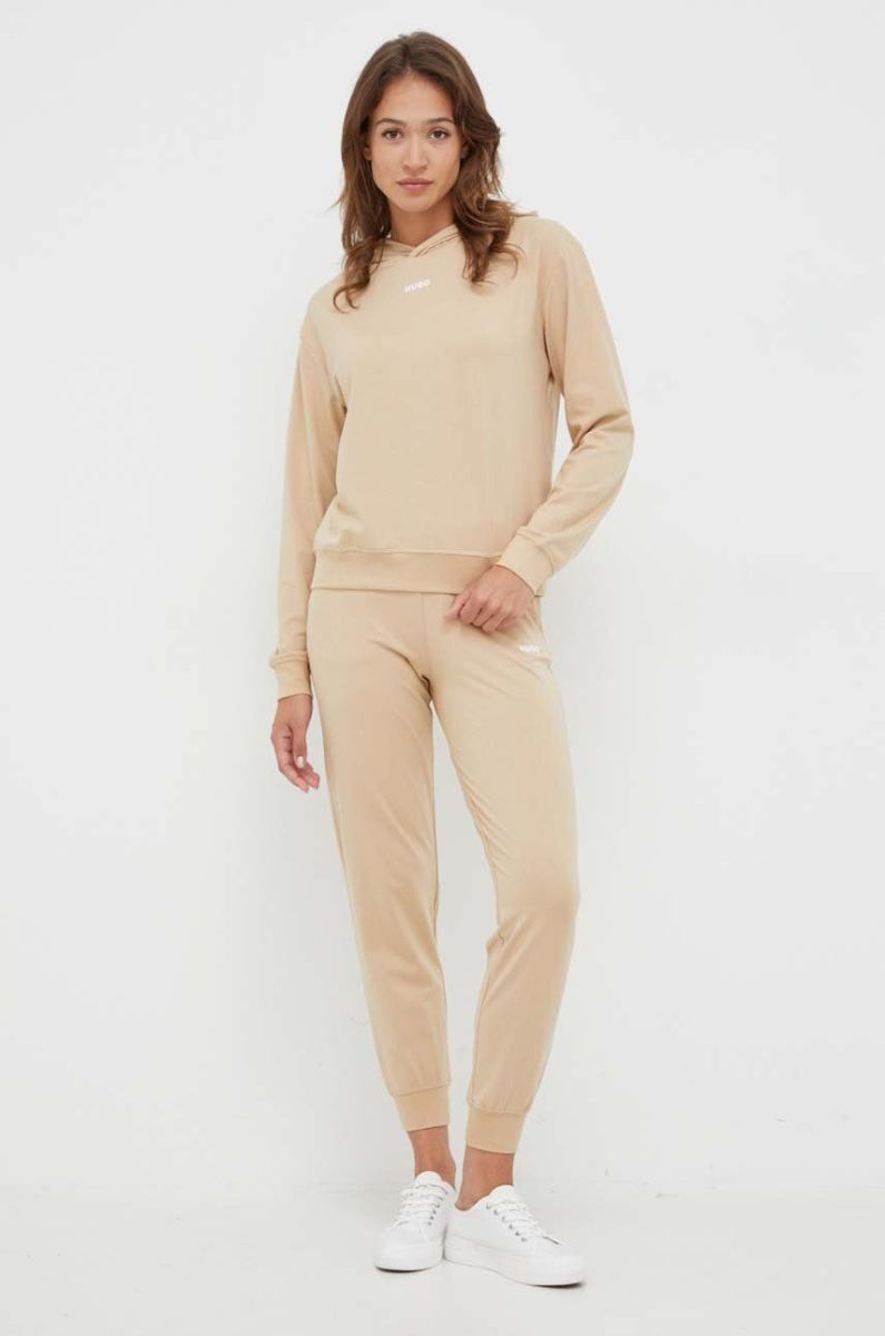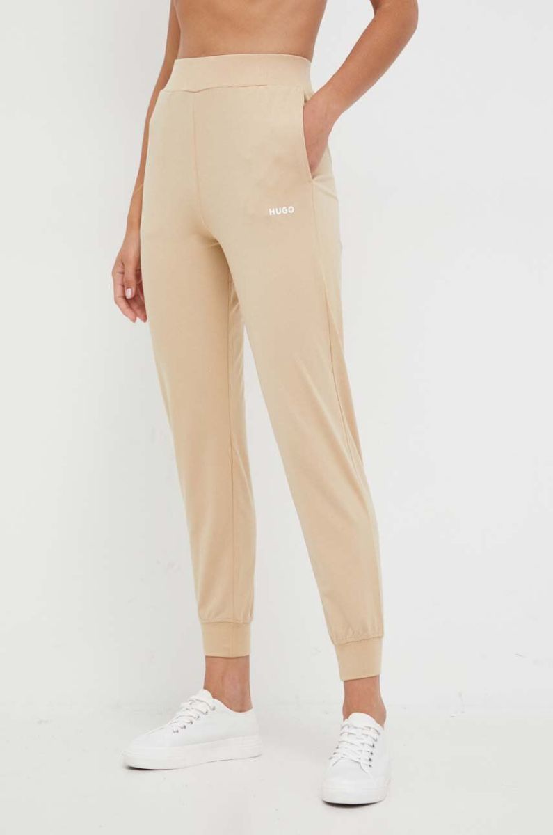 Штани лаунж HUGO колір бежевий однотонні (3381778)