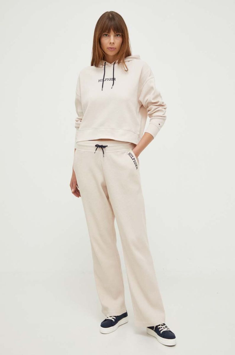 Штани лаунж Tommy Hilfiger колір бежевий з аплікацією