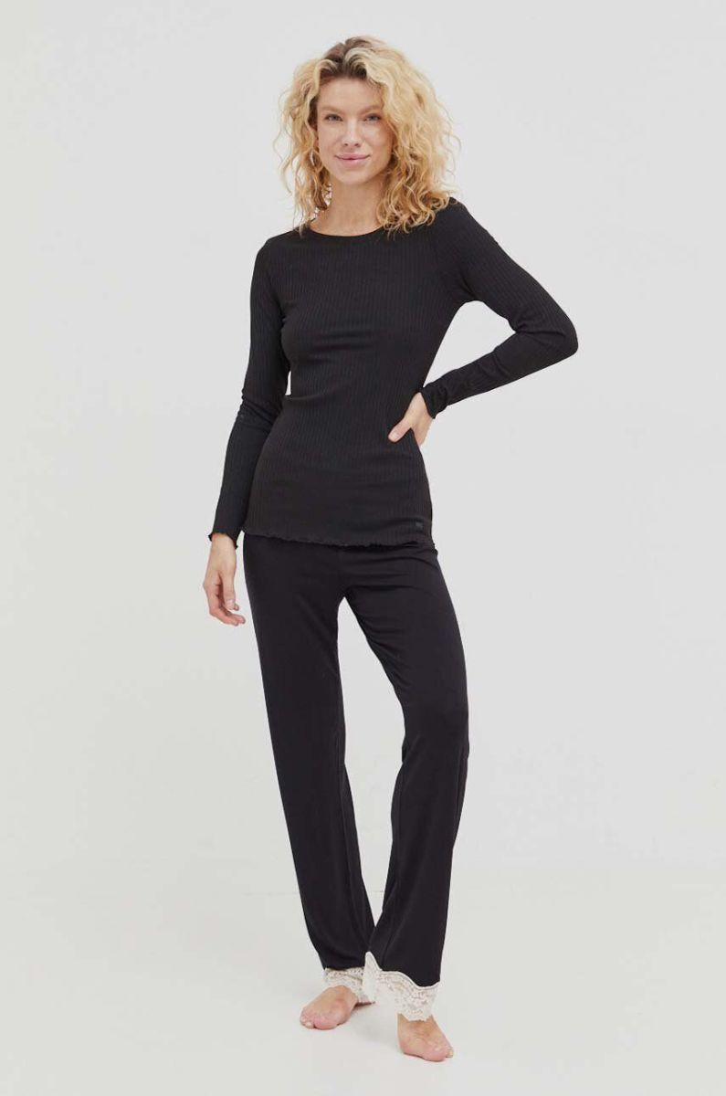 Штани лаунж United Colors of Benetton колір чорний пряме середня посадка (3410094)