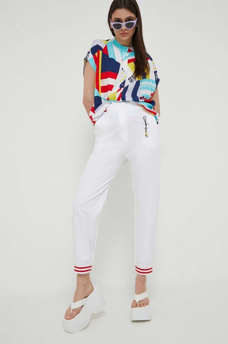 Штани Love Moschino жіночі колір білий пряме висока посадка