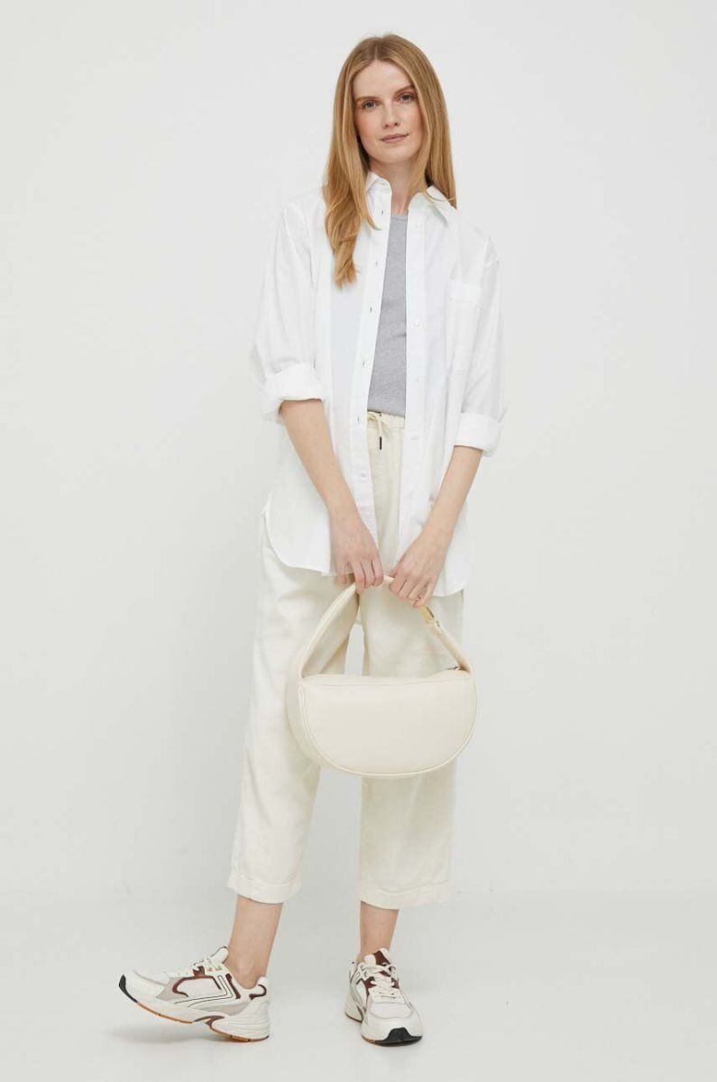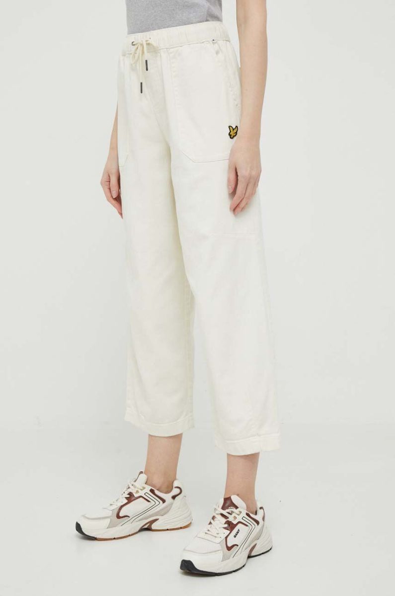 Штани Lyle & Scott жіночі колір бежевий пряме висока посадка