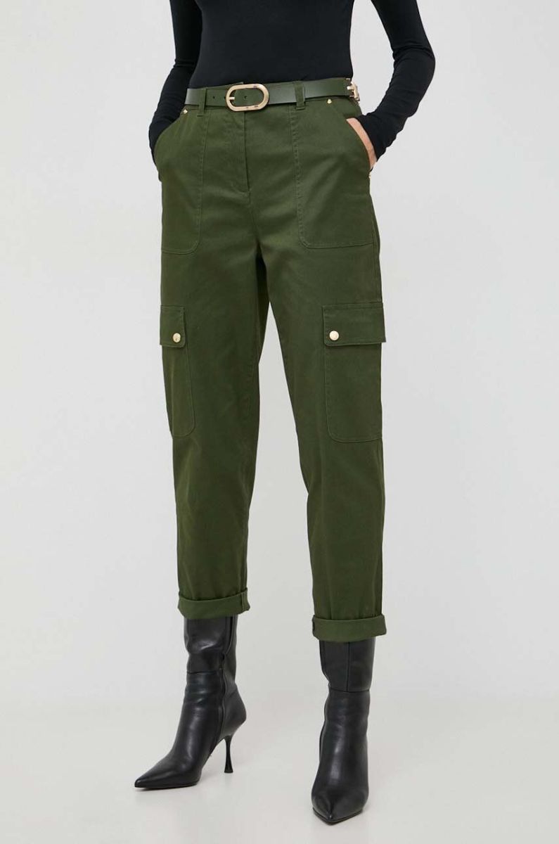 Штани MICHAEL Michael Kors жіночі колір зелений пряме висока посадка