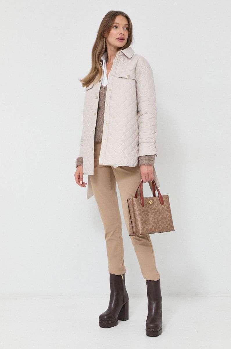 Штани Morgan жіночі колір бежевий облягаюче висока посадка (2824333)