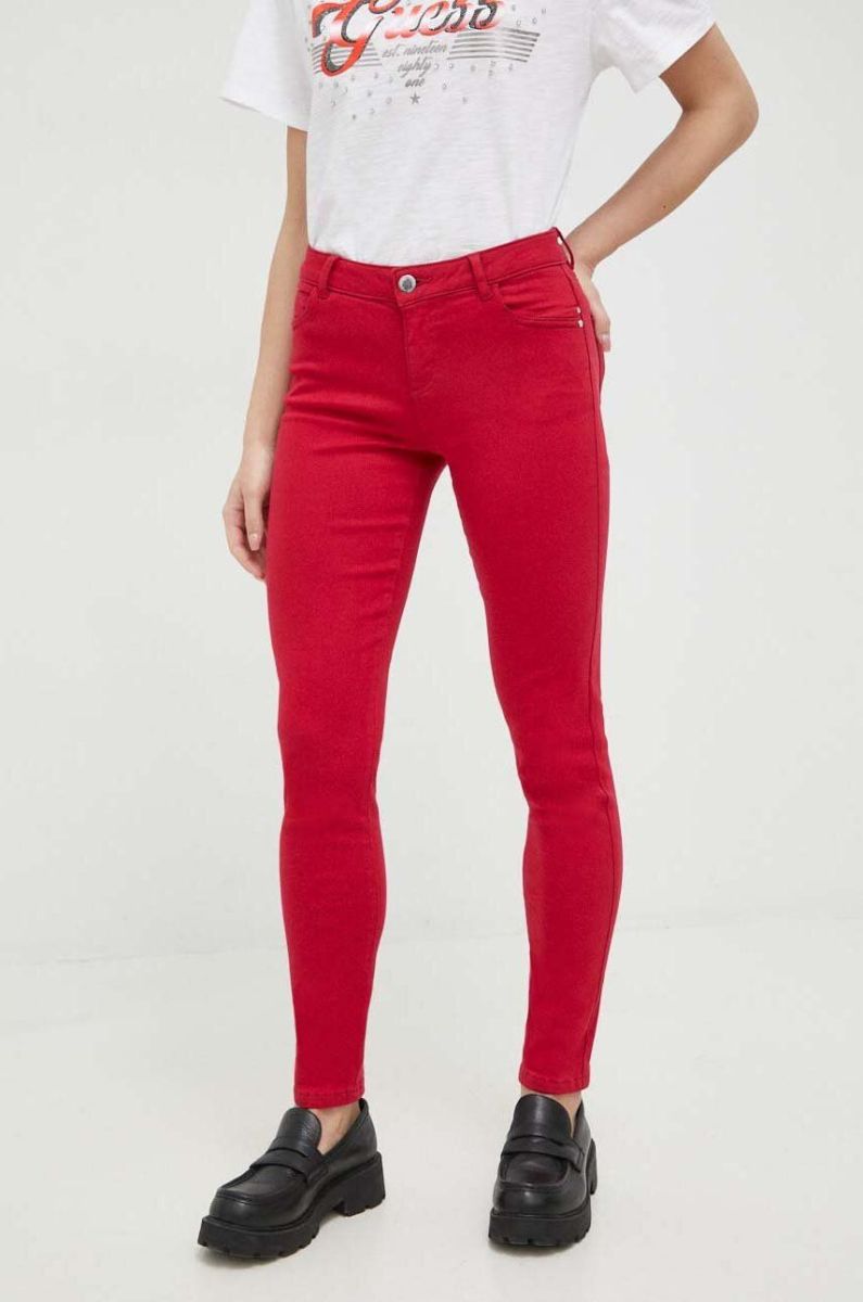 Штани Morgan жіночі колір червоний облягаюче висока посадка (3074757)
