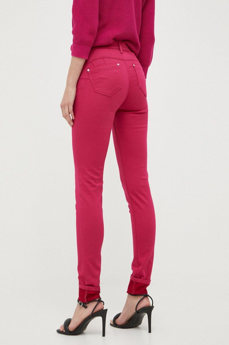 Штани Morgan жіночі колір рожевий облягаюче середня посадка