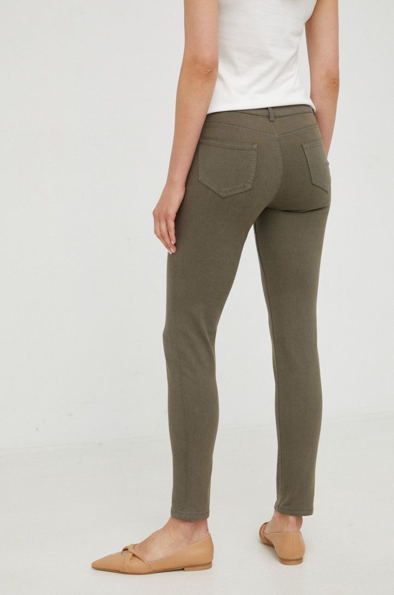 Штани Morgan жіночі колір зелений облягаюче висока посадка