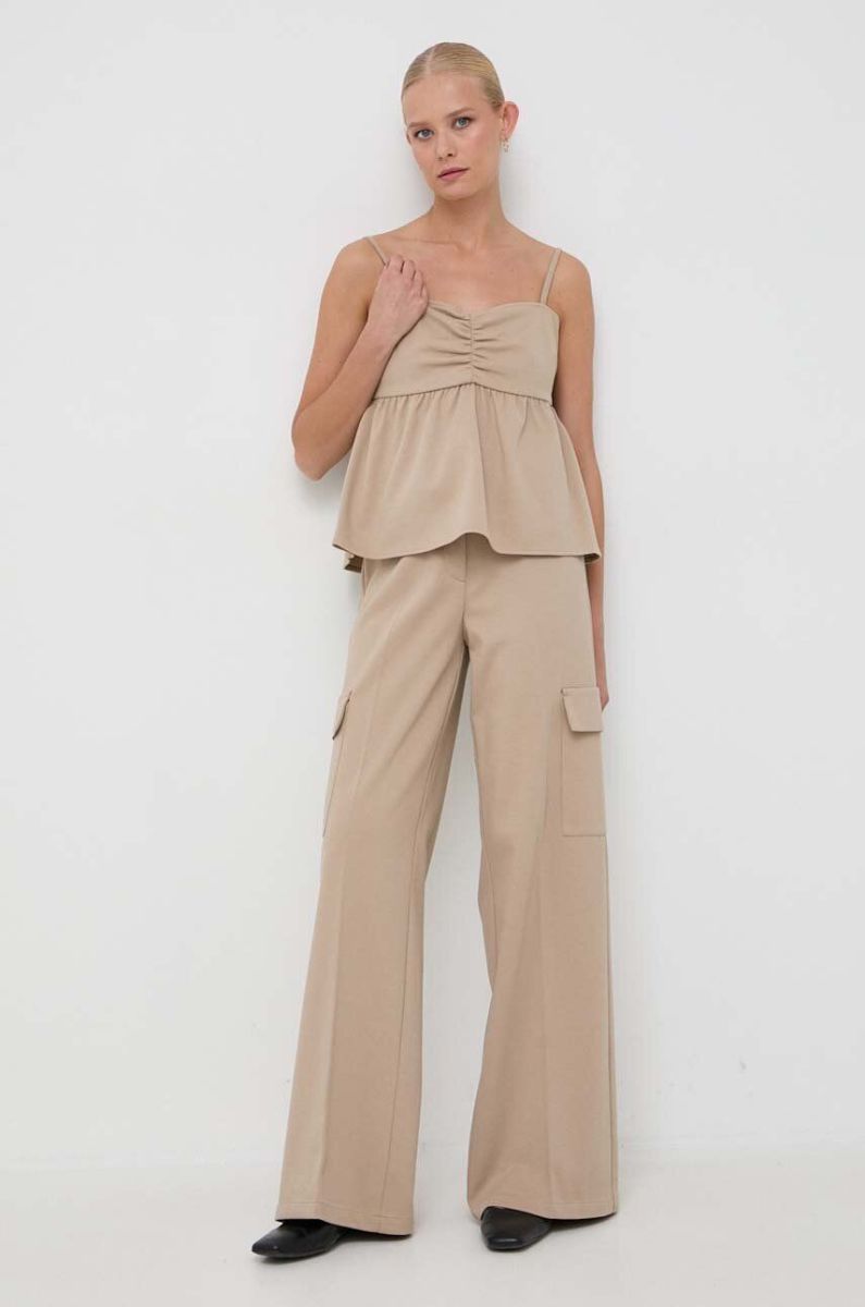 Штани Notes du Nord Inessa жіночі колір бежевий прямі висока посадка