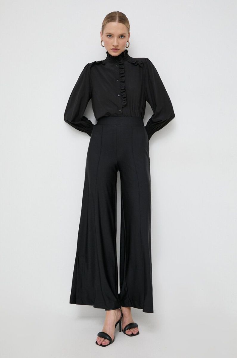 Штани Notes du Nord жіночі колір чорний широке висока посадка (3555047)