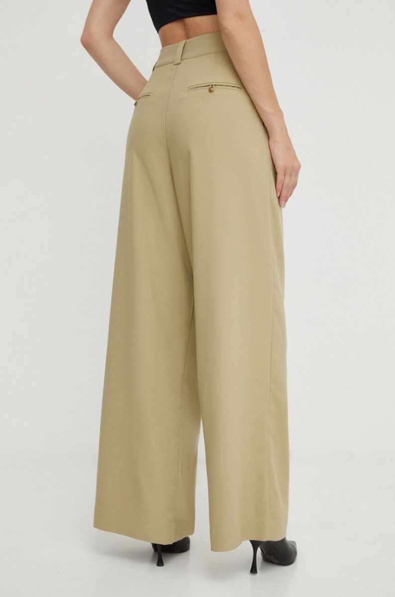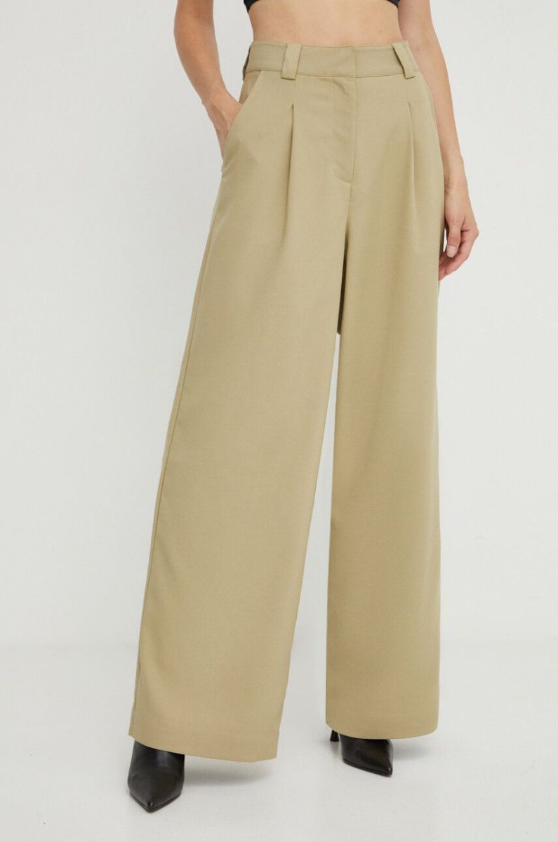 Штани Notes du Nord жіночі колір зелений широке висока посадка