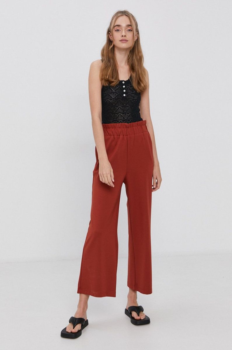 Штани Only жіночі колір бордовий широке висока посадка