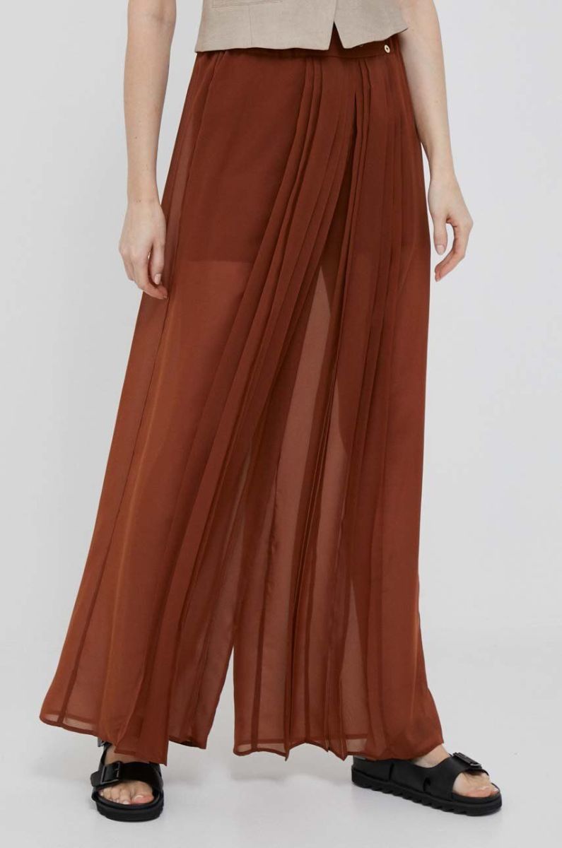 Штани Pennyblack жіночі колір коричневий широке висока посадка (3213313)