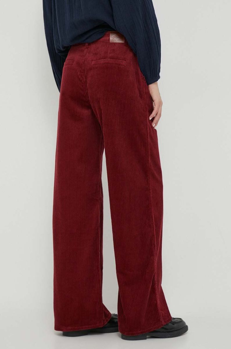 Штани Pepe Jeans CECILIA CORD жіночі колір бордовий широкі висока посадка