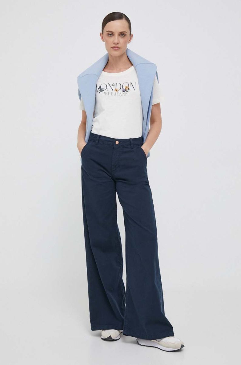 Штани Pepe Jeans жіночі колір синій широке висока посадка (3463328)