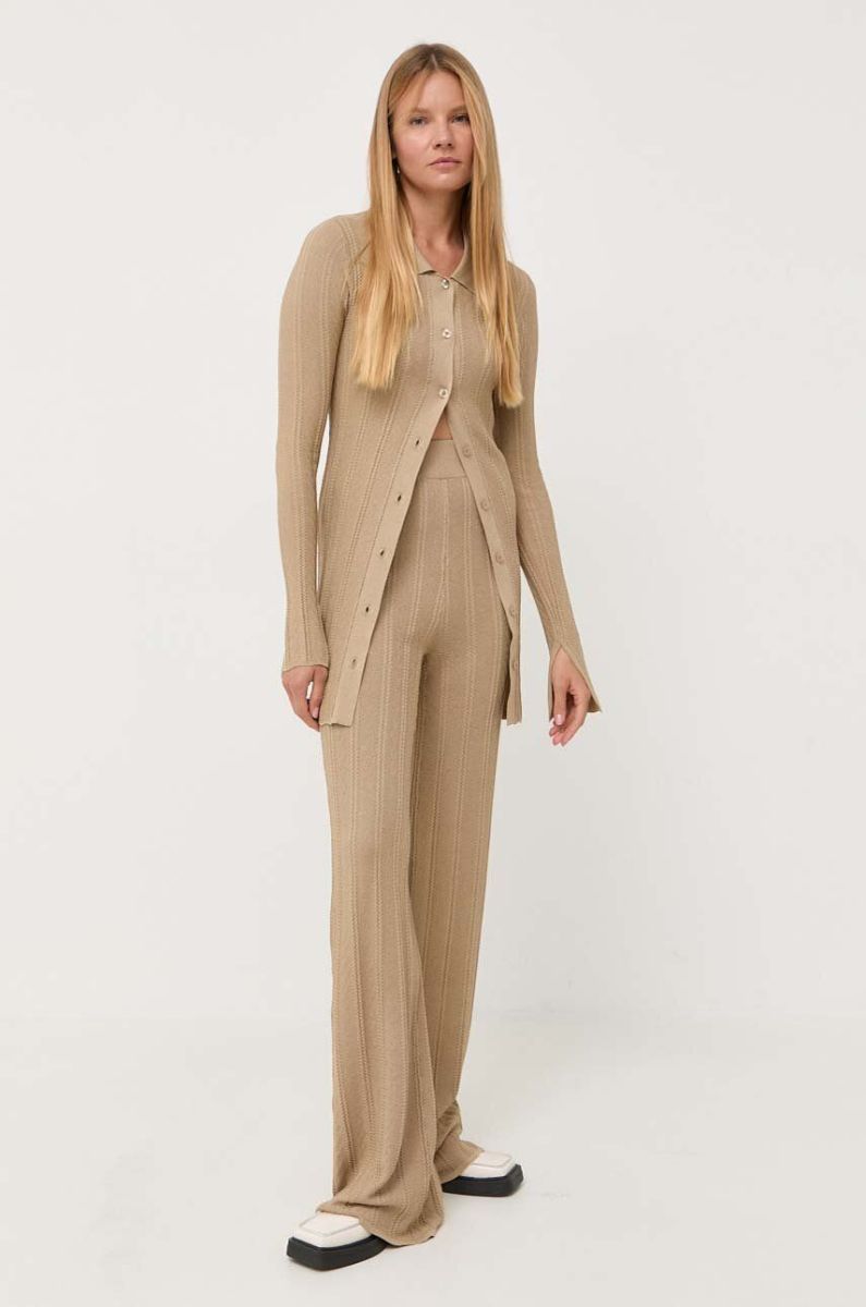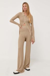 Штани Remain жіночі колір бежевий кльош висока посадка