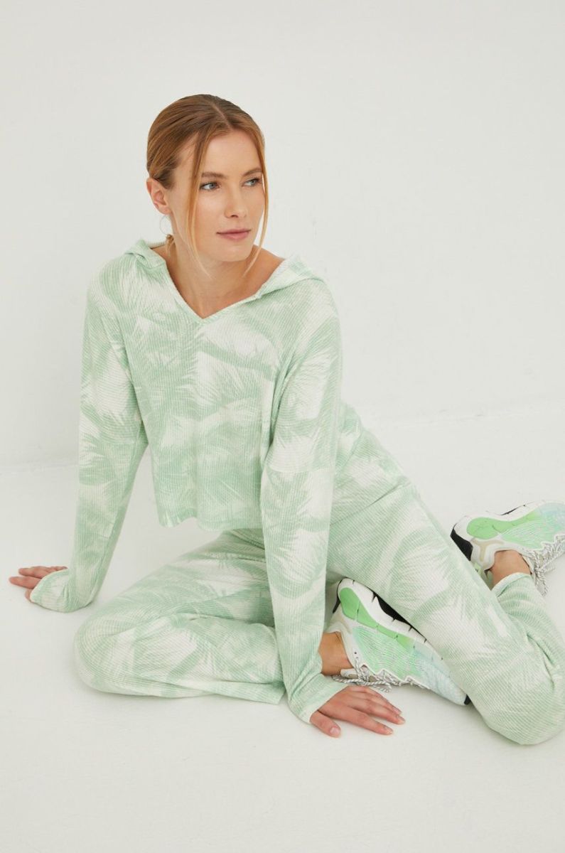 Штани Roxy жіночі колір зелений кльош висока посадка
