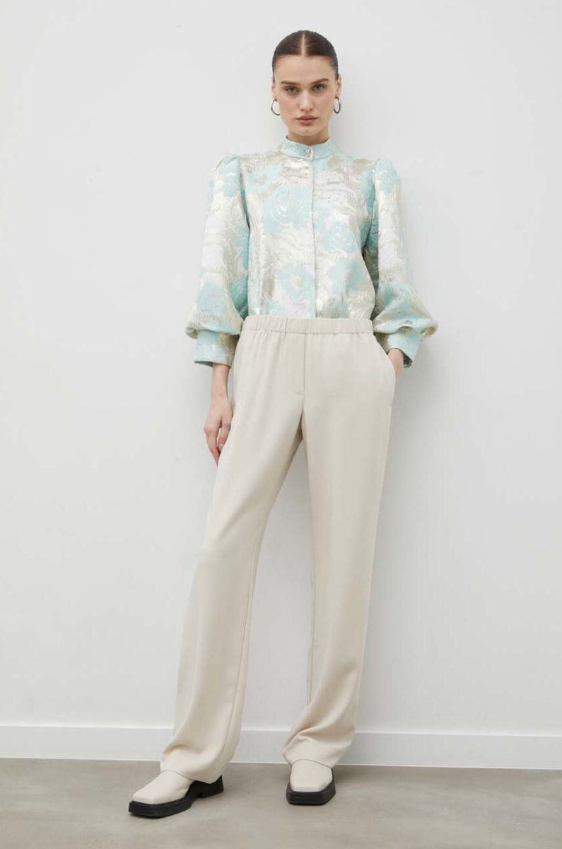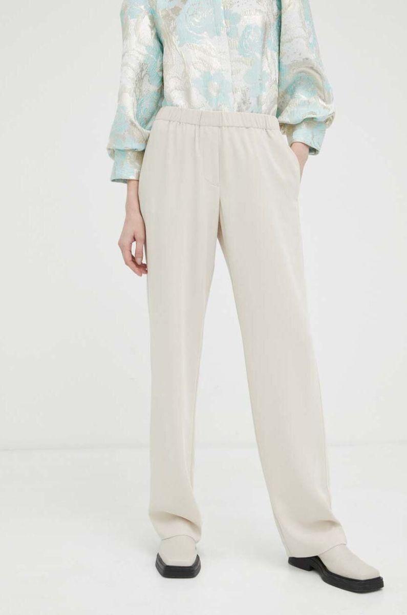 Штани Samsoe Samsoe жіночі колір бежевий пряме висока посадка (3236895)