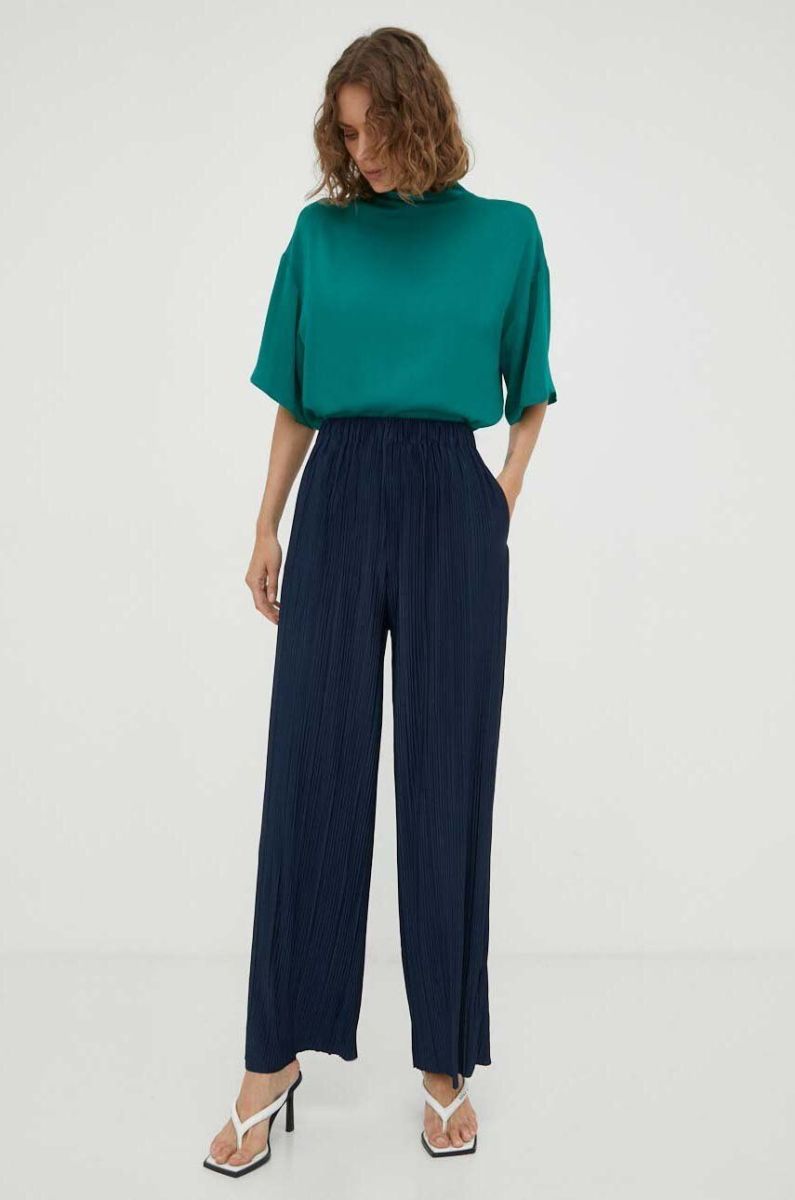 Штани Samsoe Samsoe жіночі колір синій широке висока посадка