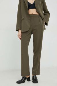 Штани Samsoe Samsoe жіночі колір зелений пряме висока посадка (2870812)