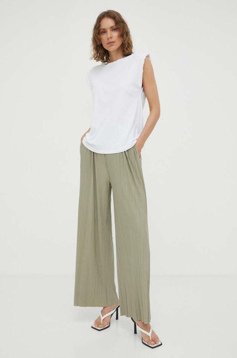 Штани Samsoe Samsoe жіночі колір зелений широке висока посадка (3377129)