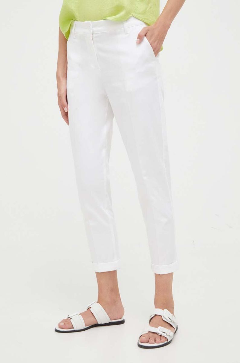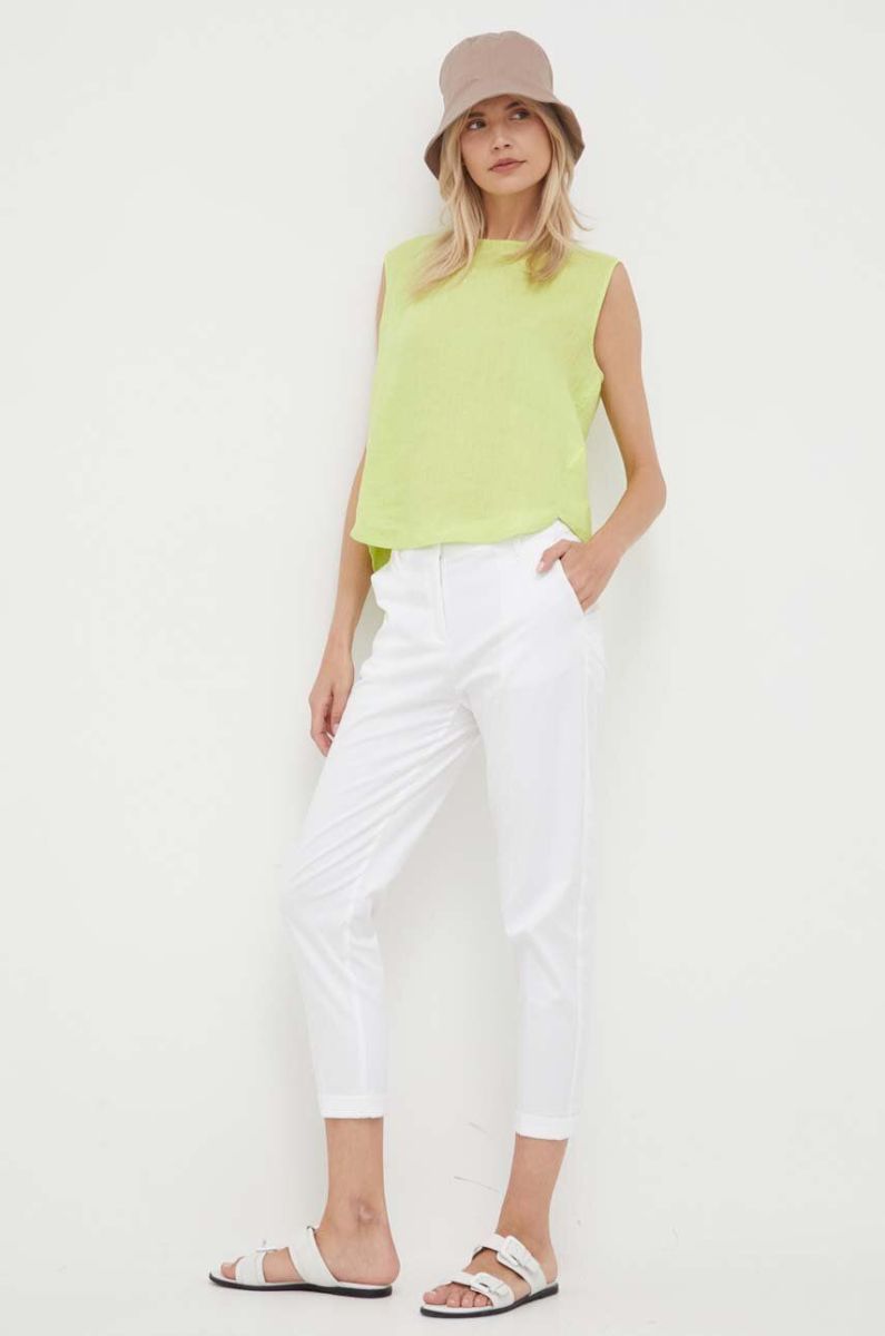 Штани Sisley жіночі колір білий облягаюче висока посадка