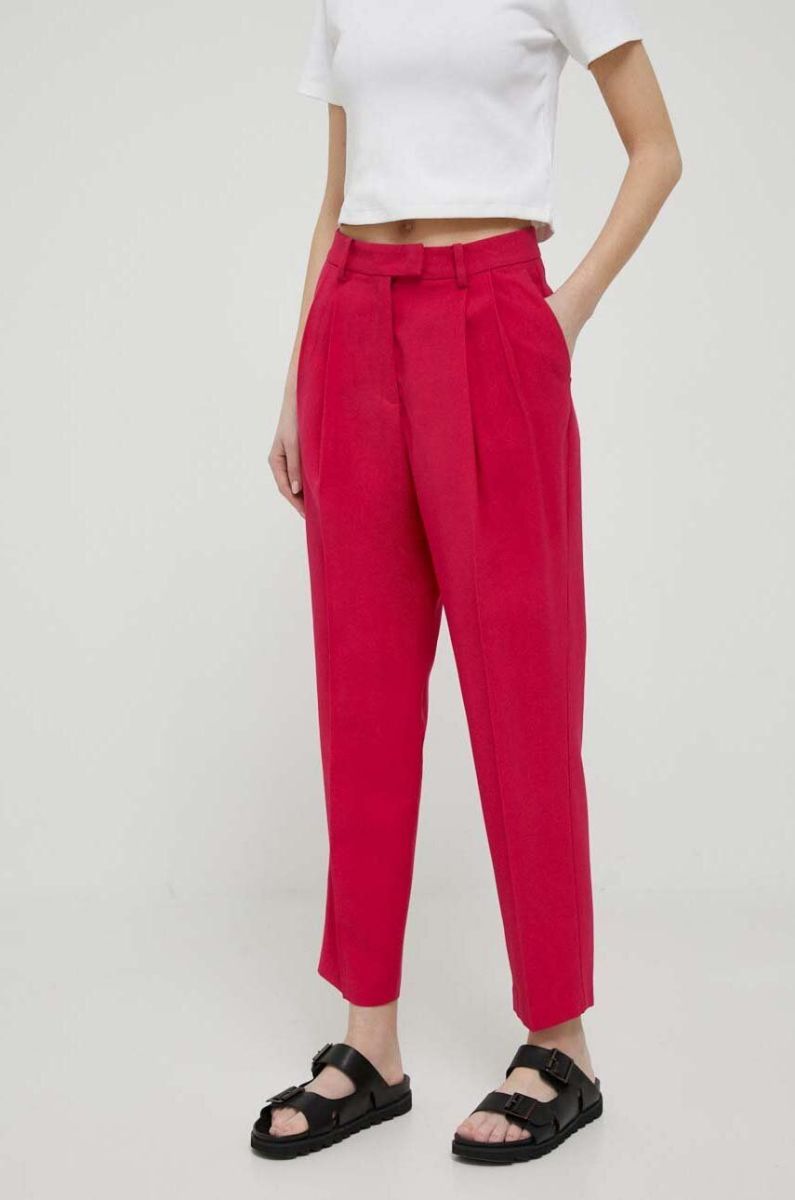 Штани Sisley жіночі колір рожевий фасон сигарети висока посадка (3238555)