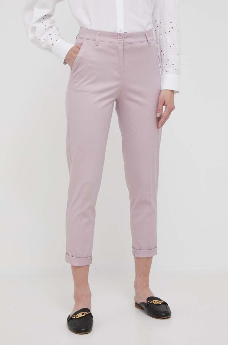 Штани Sisley жіночі колір рожевий фасон сигарети висока посадка (3282758)