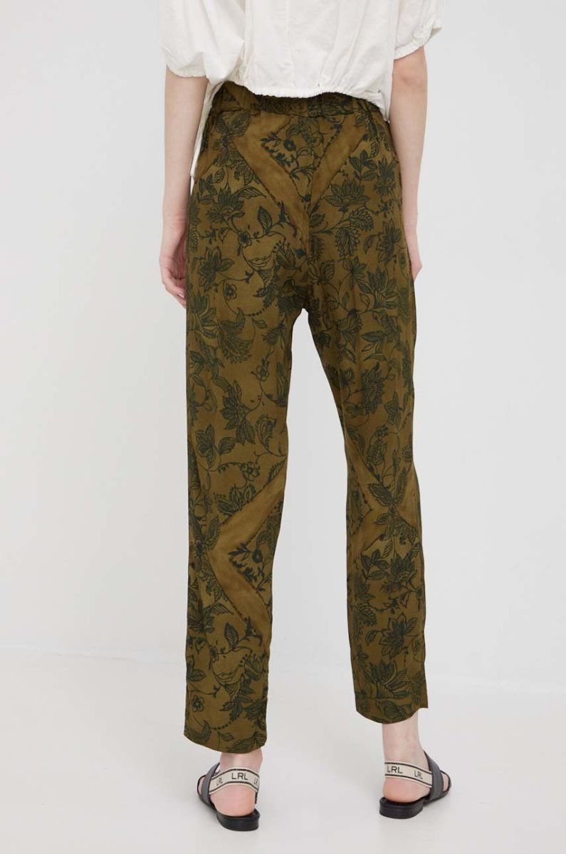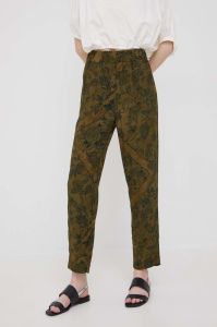 Штани Sisley жіночі колір зелений пряме висока посадка (2356395)