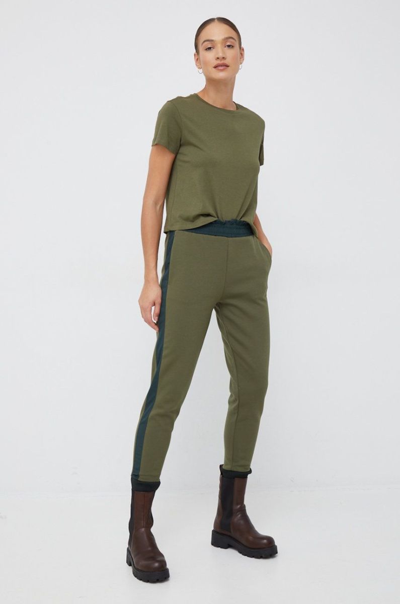 Штани Sisley жіночі колір зелений пряме висока посадка (2709453)
