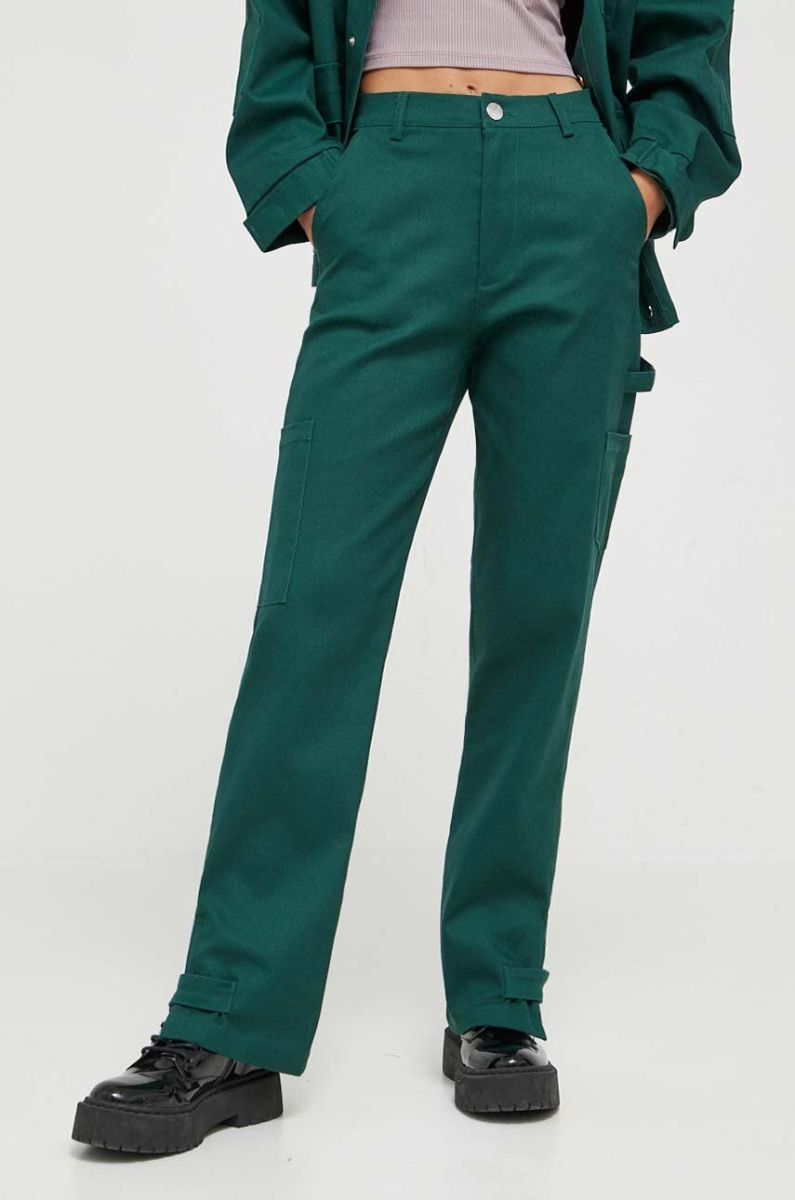 Штани Sixth June жіночі колір зелений пряме висока посадка