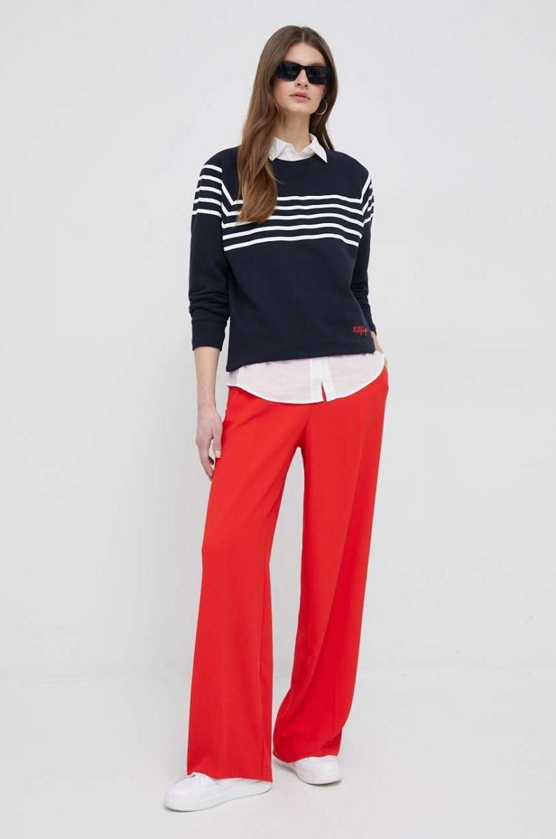Штани Tommy Hilfiger жіночі колір червоний широке висока посадка