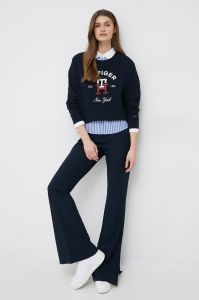 Штани Tommy Hilfiger жіночі колір синій кльош висока посадка