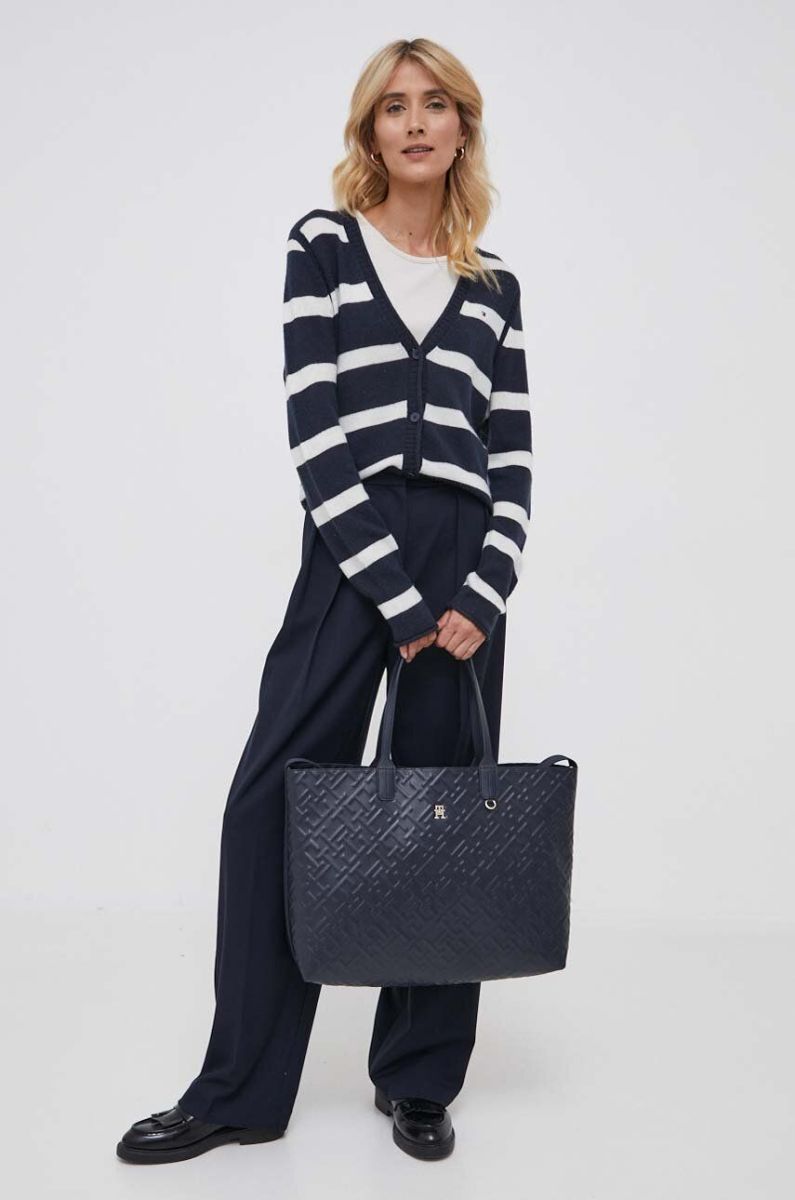 Штани Tommy Hilfiger жіночі колір синій широке висока посадка (3454920)