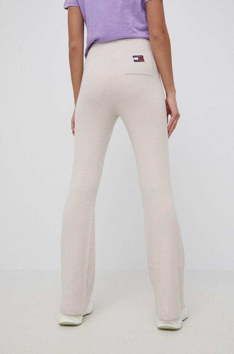 Штани Tommy Jeans жіноче колір бежевий гладке