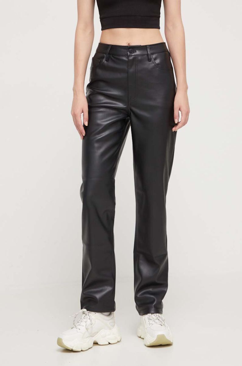 Штани Tommy Jeans жіночі колір чорний пряме висока посадка