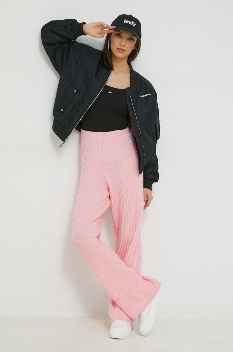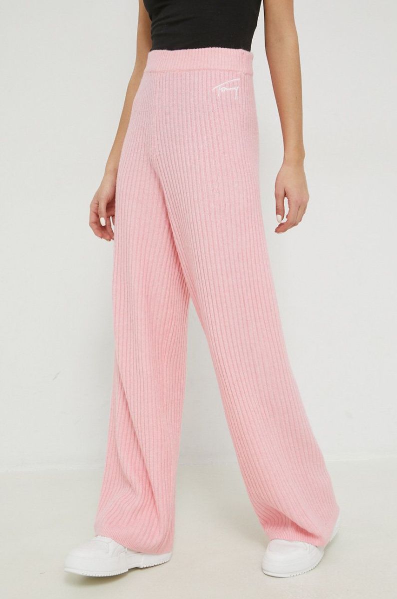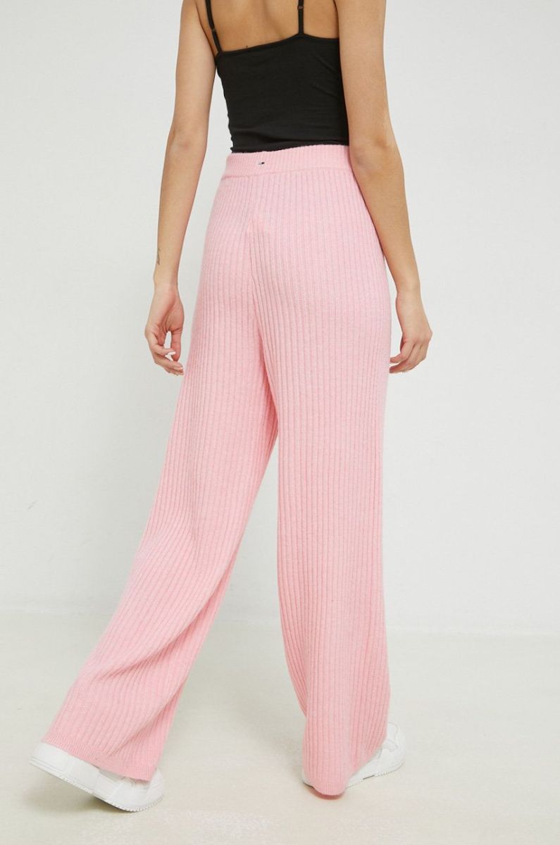 Штани Tommy Jeans жіночі колір рожевий широке висока посадка