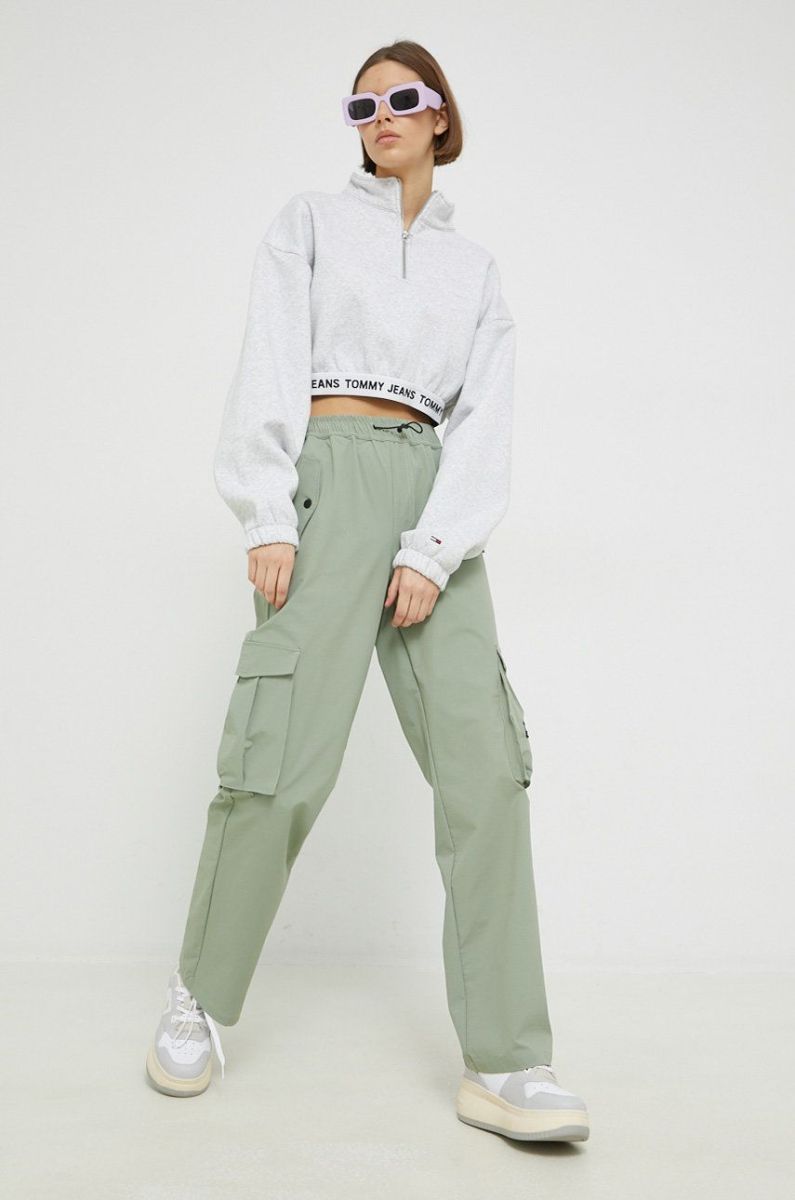 штани Tommy Jeans жіночі колір зелений фасон cargo висока посадка