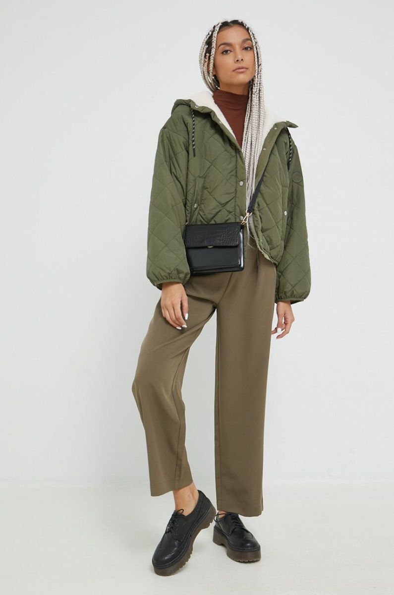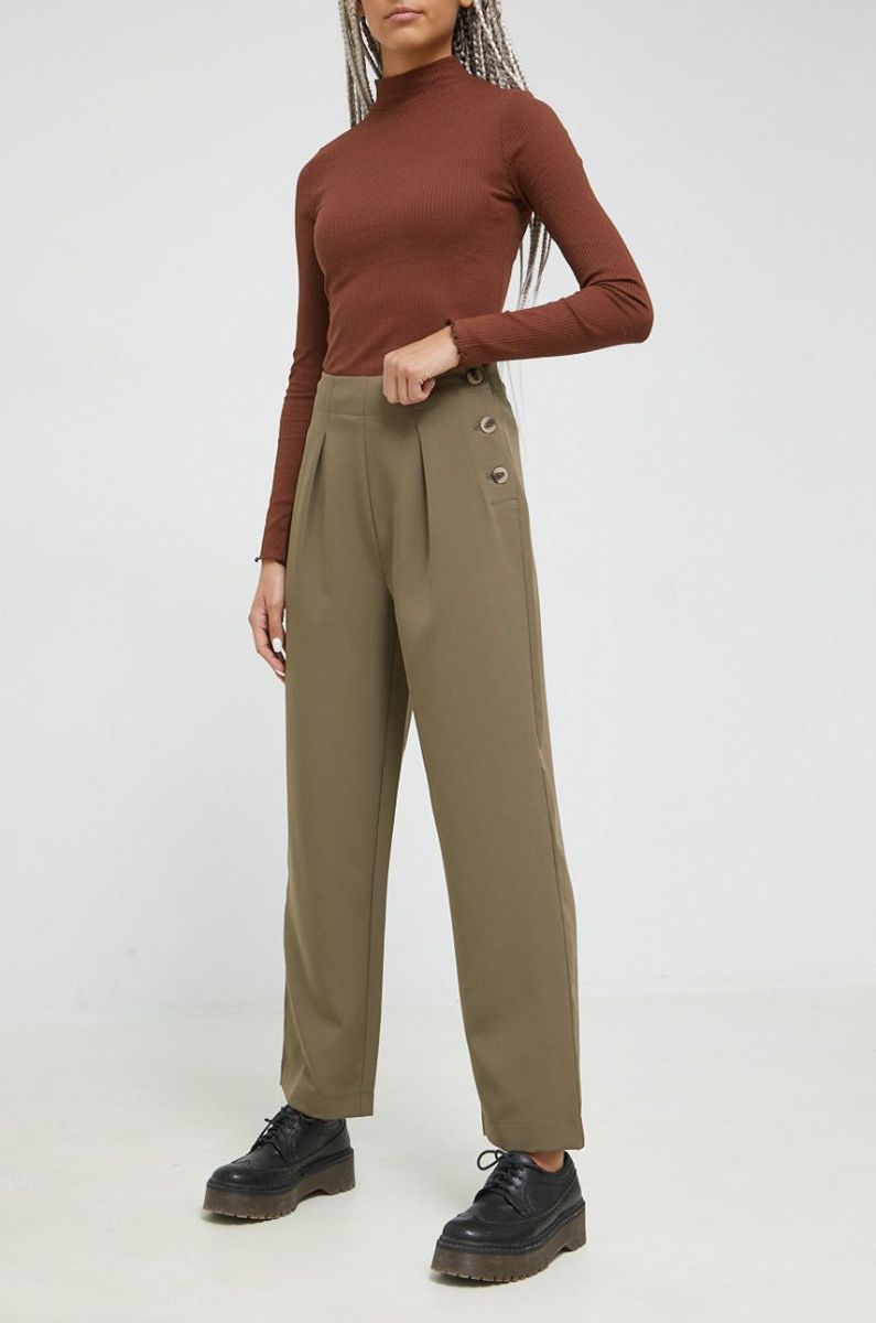 Штани Vila жіночі колір зелений широке висока посадка