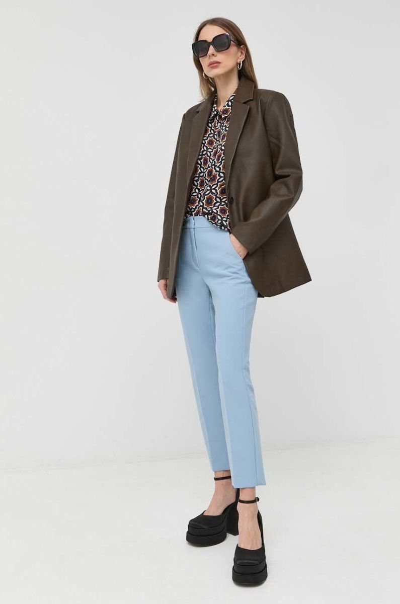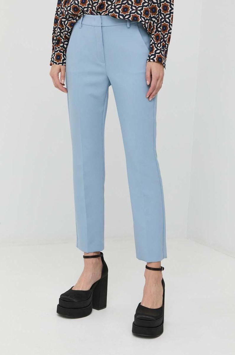 Штани Weekend Max Mara Rana жіночі облягаючі висока посадка колір блакитний