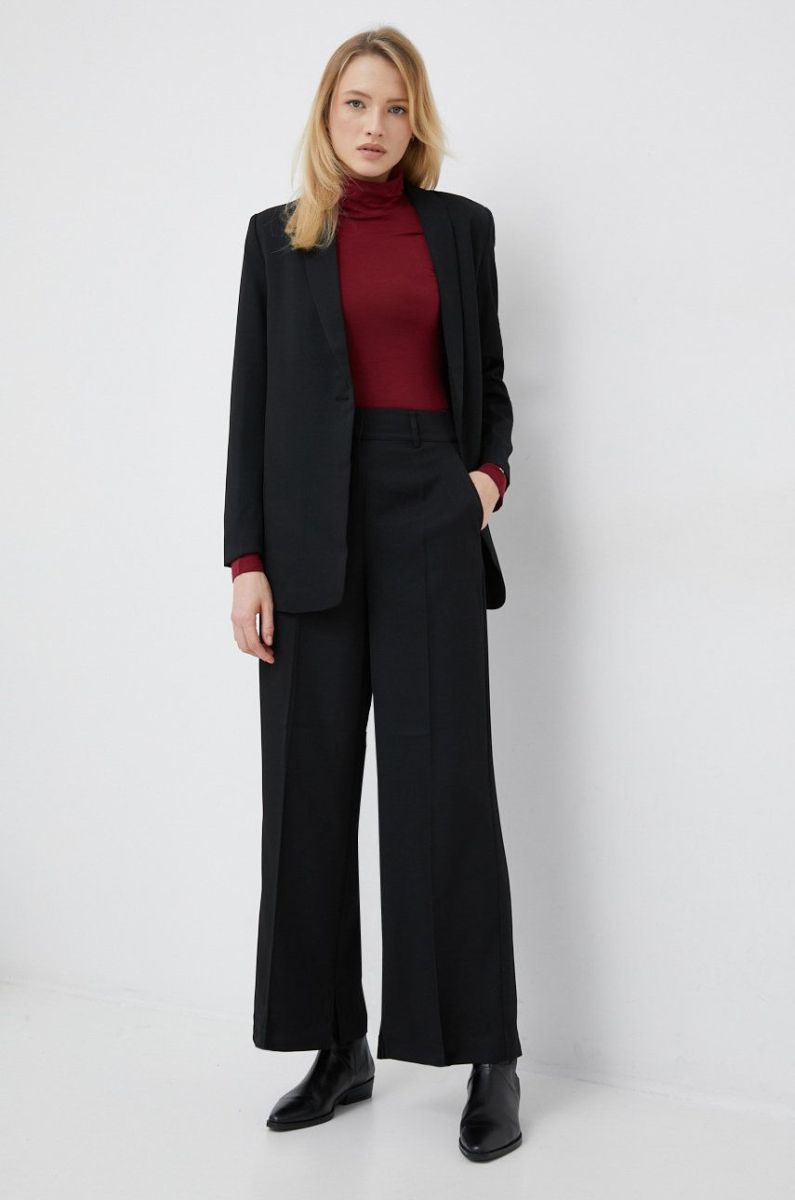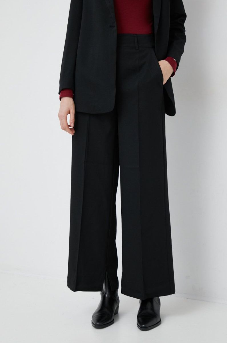 Штани Y.A.S Deeply жіночі колір чорний прямі висока посадка