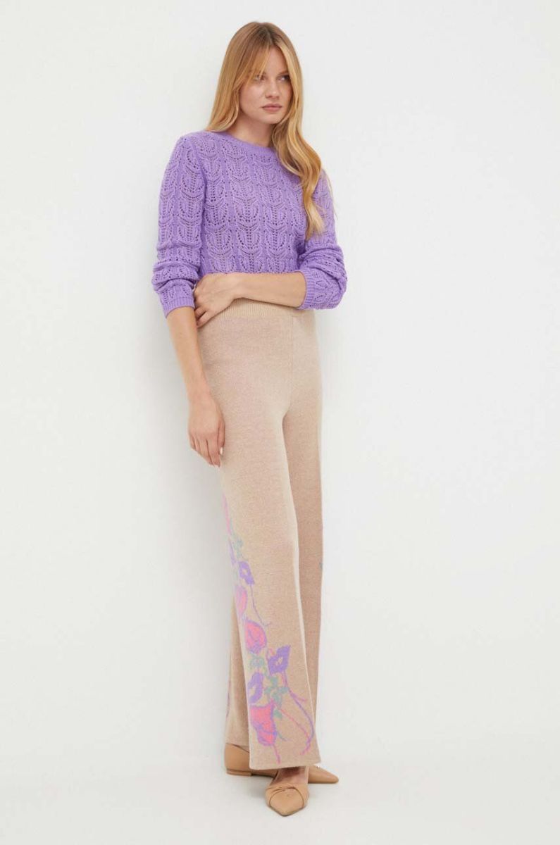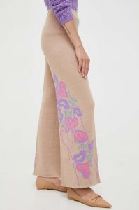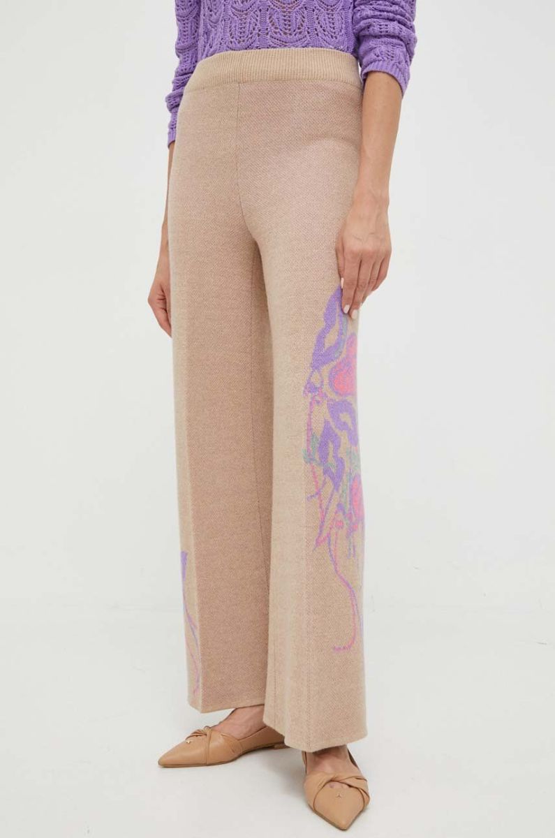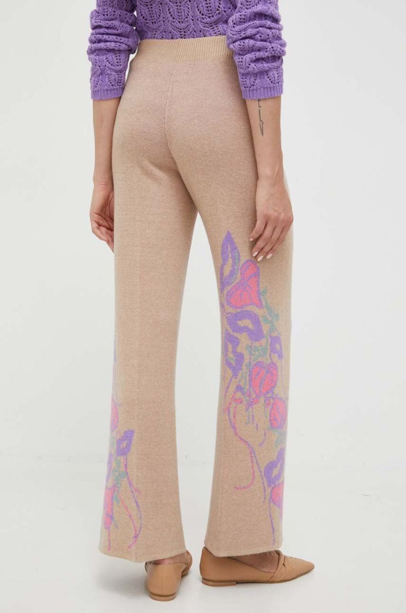 Штани з домішкою кашеміру Twinset x Marco Rambaldi колір бежевий кльош висока посадка