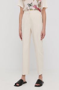 Штани з домішкою льону Beatrice B жіночі колір бежевий пряме висока посадка