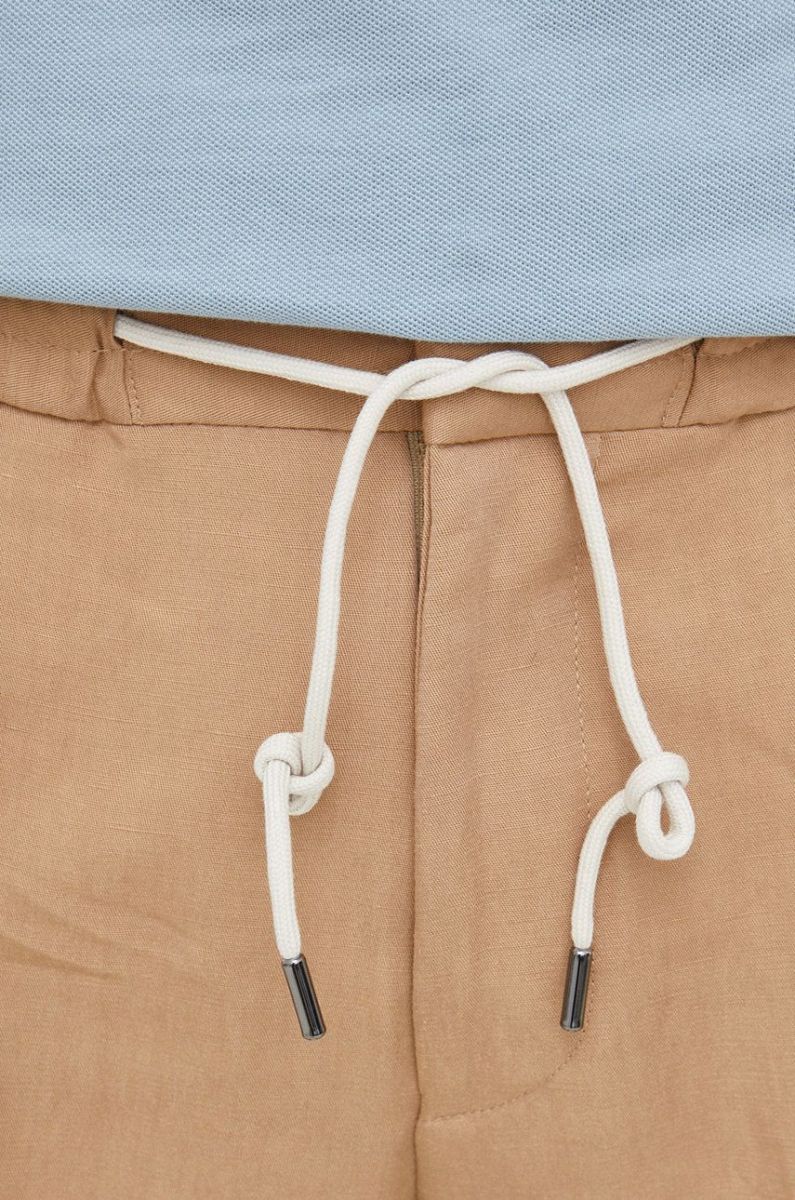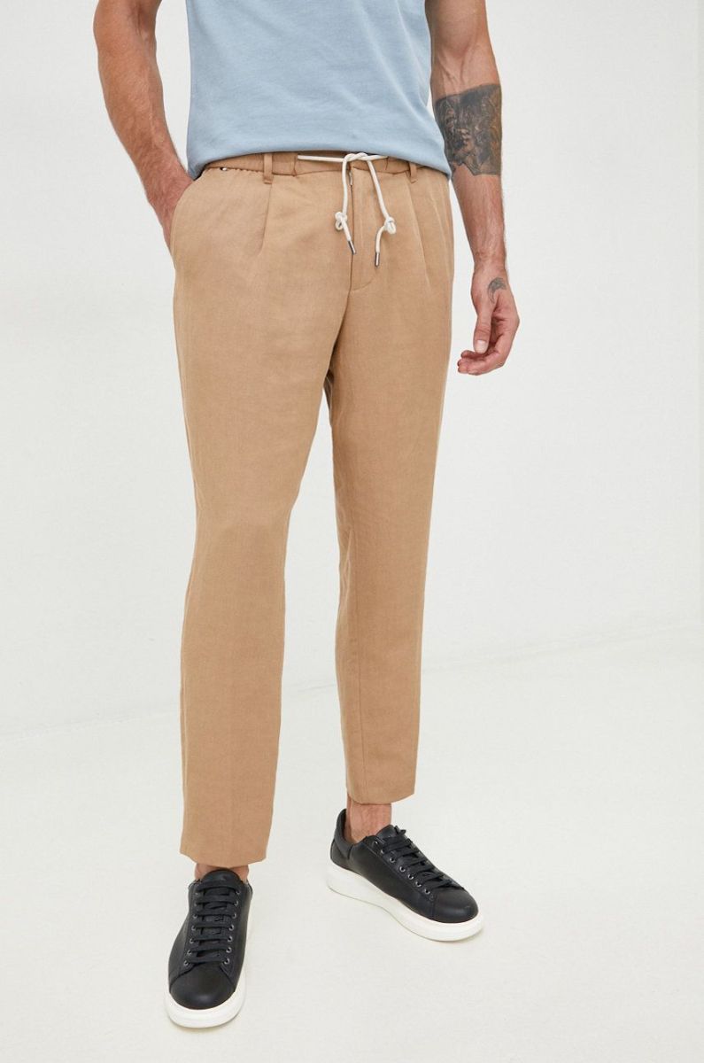 Штани з домішкою льону BOSS чоловічі колір коричневий пряме