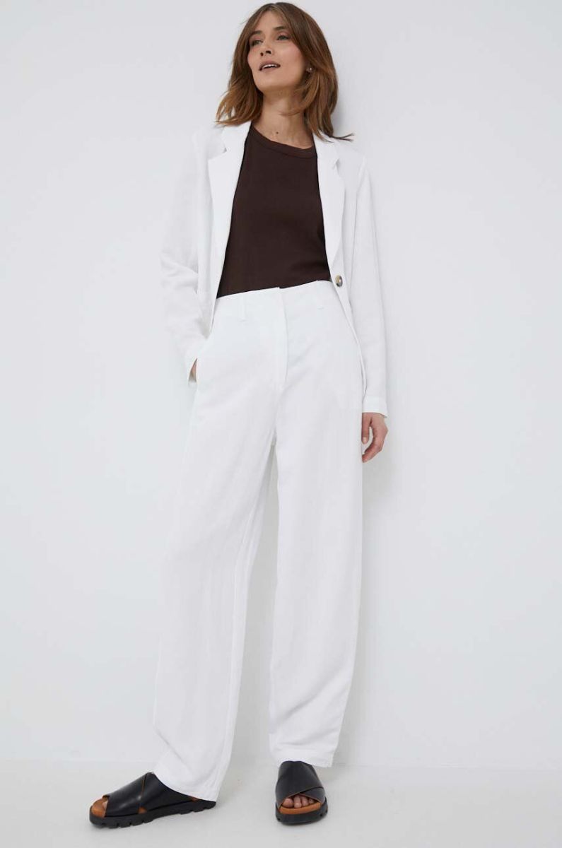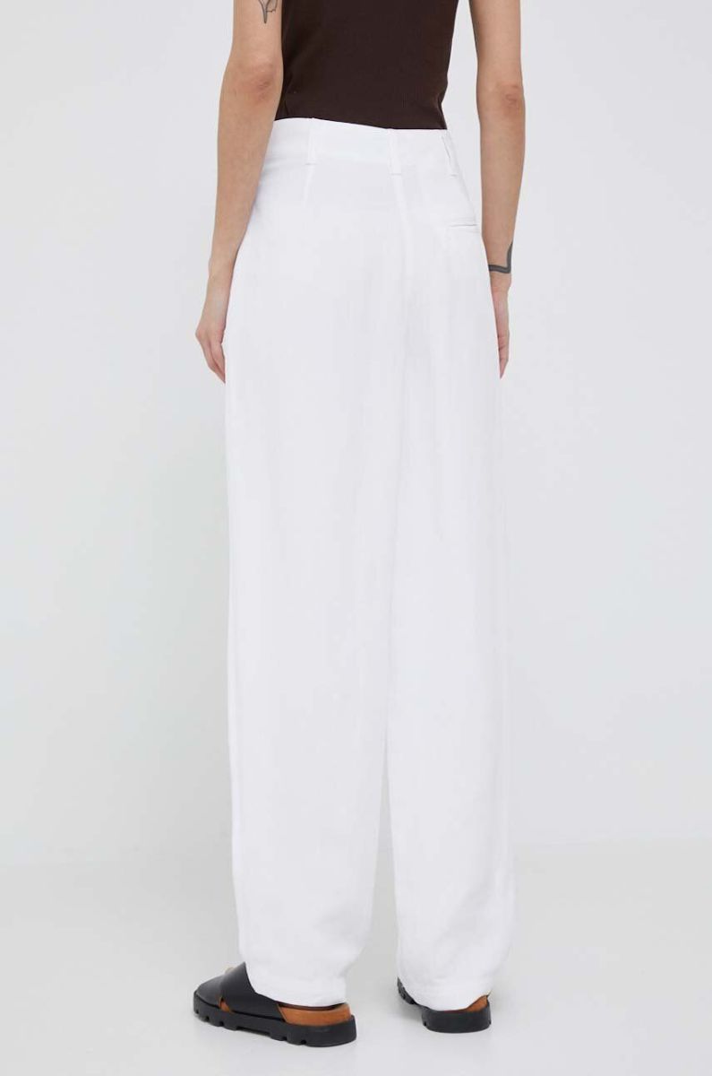 Штани з домішкою льону Emporio Armani колір білий широке висока посадка