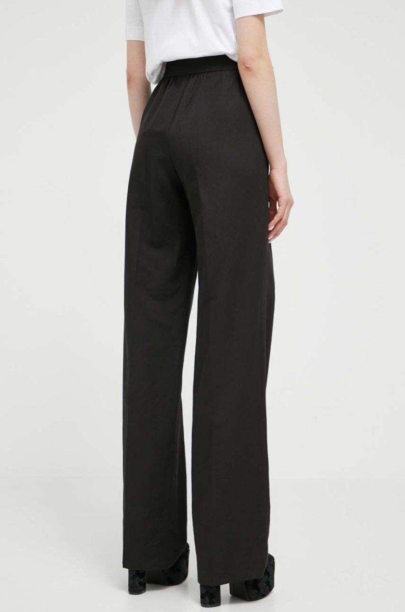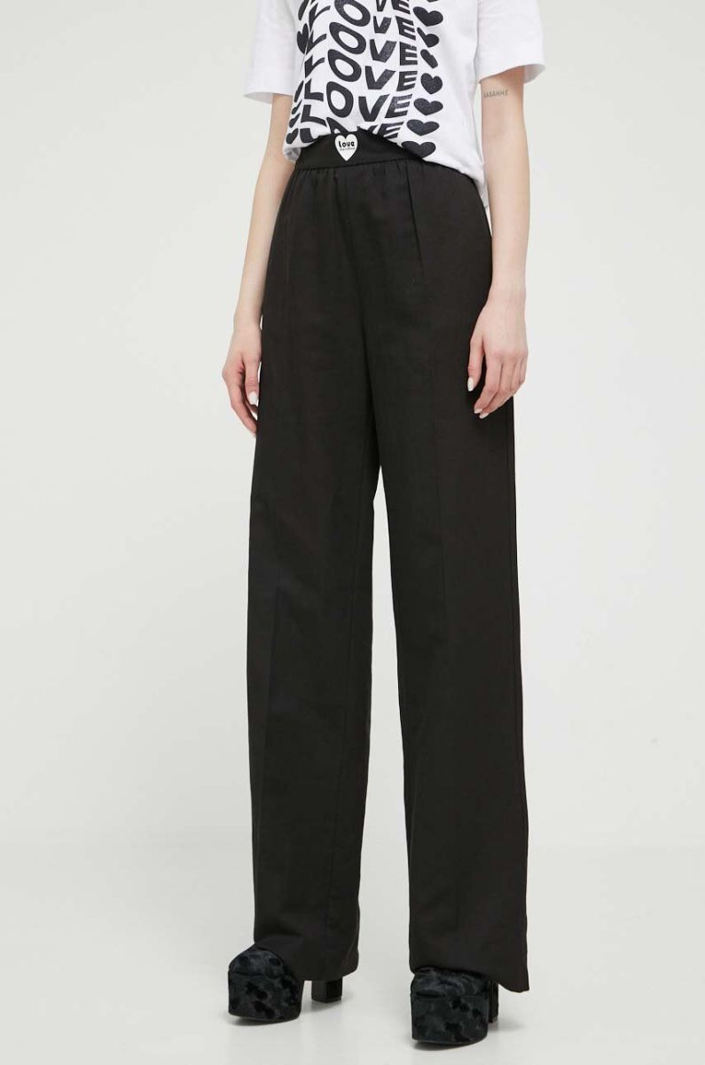 Штани з домішкою льону Love Moschino колір чорний пряме висока посадка
