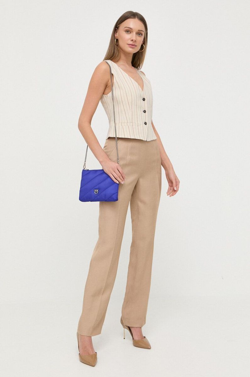 Штани з домішкою льону Luisa Spagnoli колір бежевий широке висока посадка