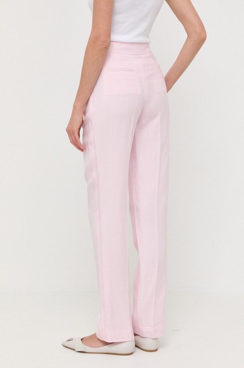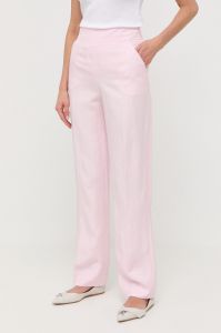Штани з домішкою льону Luisa Spagnoli колір рожевий широке висока посадка