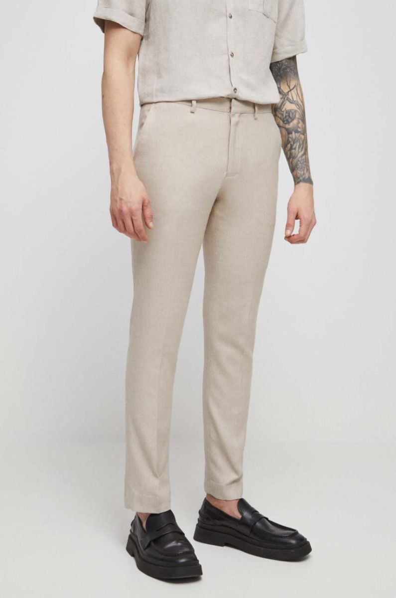 Штани з домішкою льону Medicine чоловічі колір бежевий облягаюче