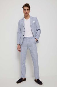 Штани з домішкою льону Medicine чоловічі облягаюче колір блакитний