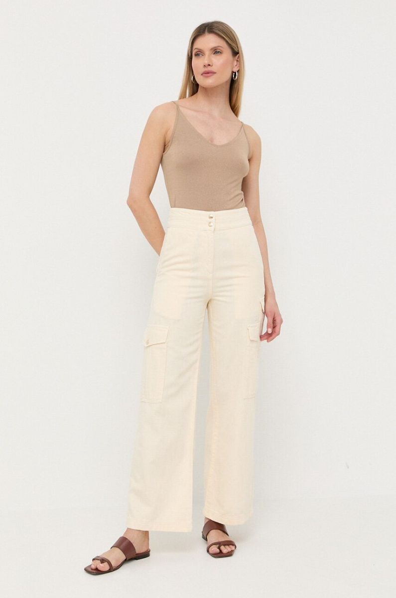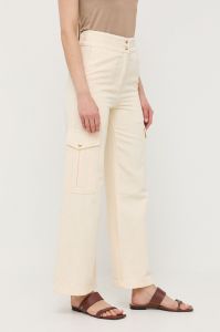 Штани з домішкою льону Patrizia Pepe висока посадка колір бежевий