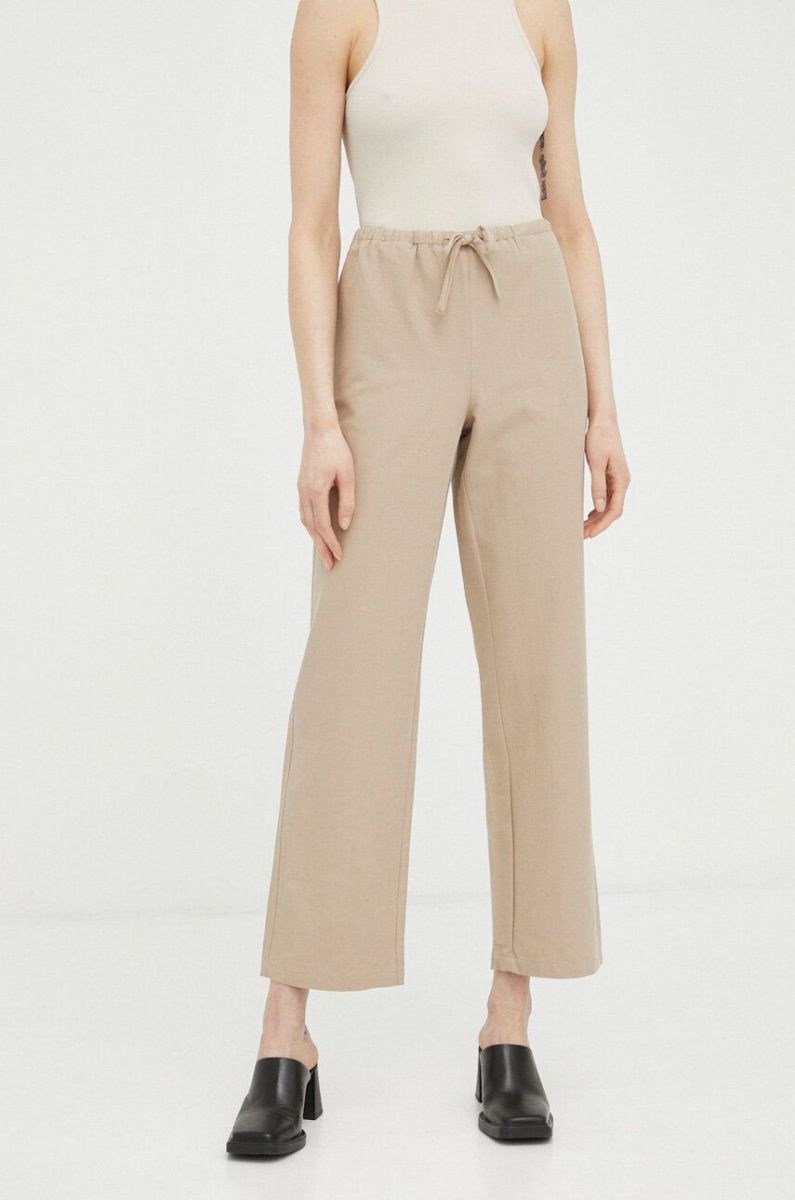 Штани з домішкою льону R?sum? колір бежевий широке висока посадка